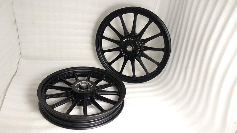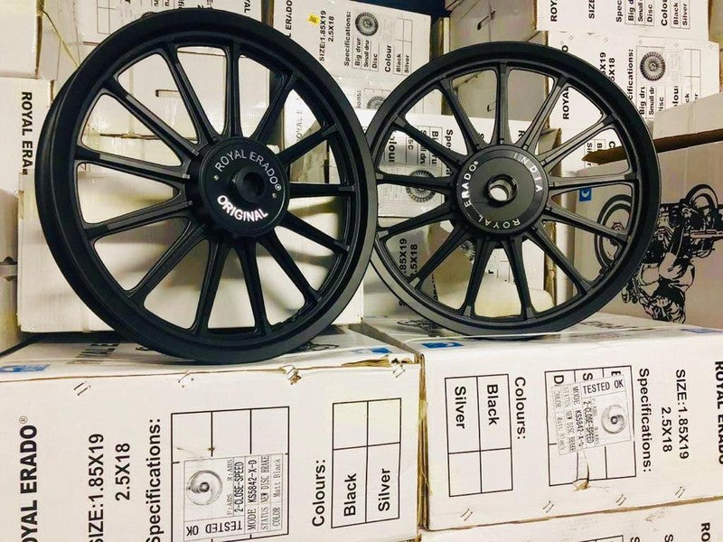 ROYAL ERADO 13 Spokes FULL BLACK Alloy Wheel set | Royal-Enfield Classic Single disc
