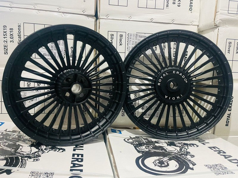 ROYAL ERADO 30 Spokes full black Alloy Wheel set | Royal-Enfield Classic Single disc