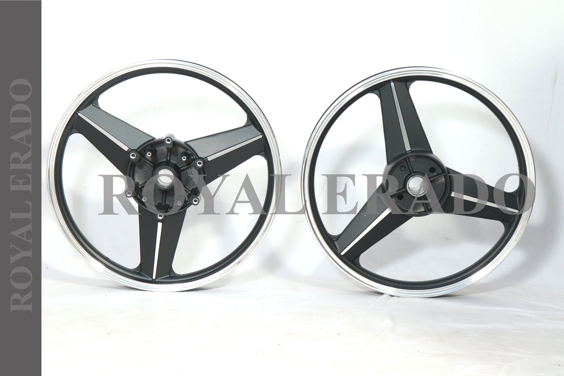 ROYAL ERADO DIAMOND MERCEDES BLACK Alloy Wheel set | Royal-Enfield Classic Single disc