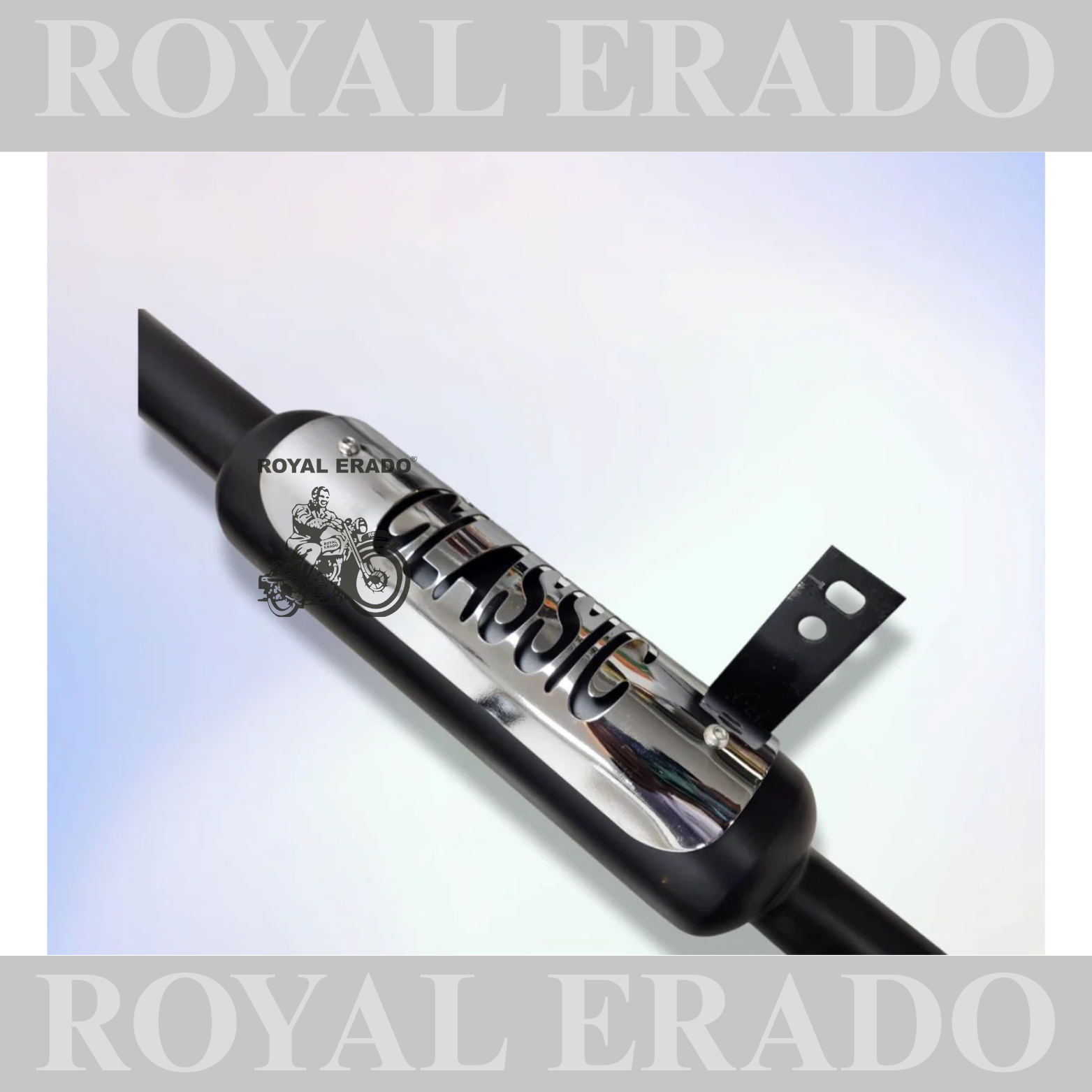NEW INDORI EXHAUST SILENCER BLACK & CHROME PLATE FOR ROYAL ENFIELD CLASSIC