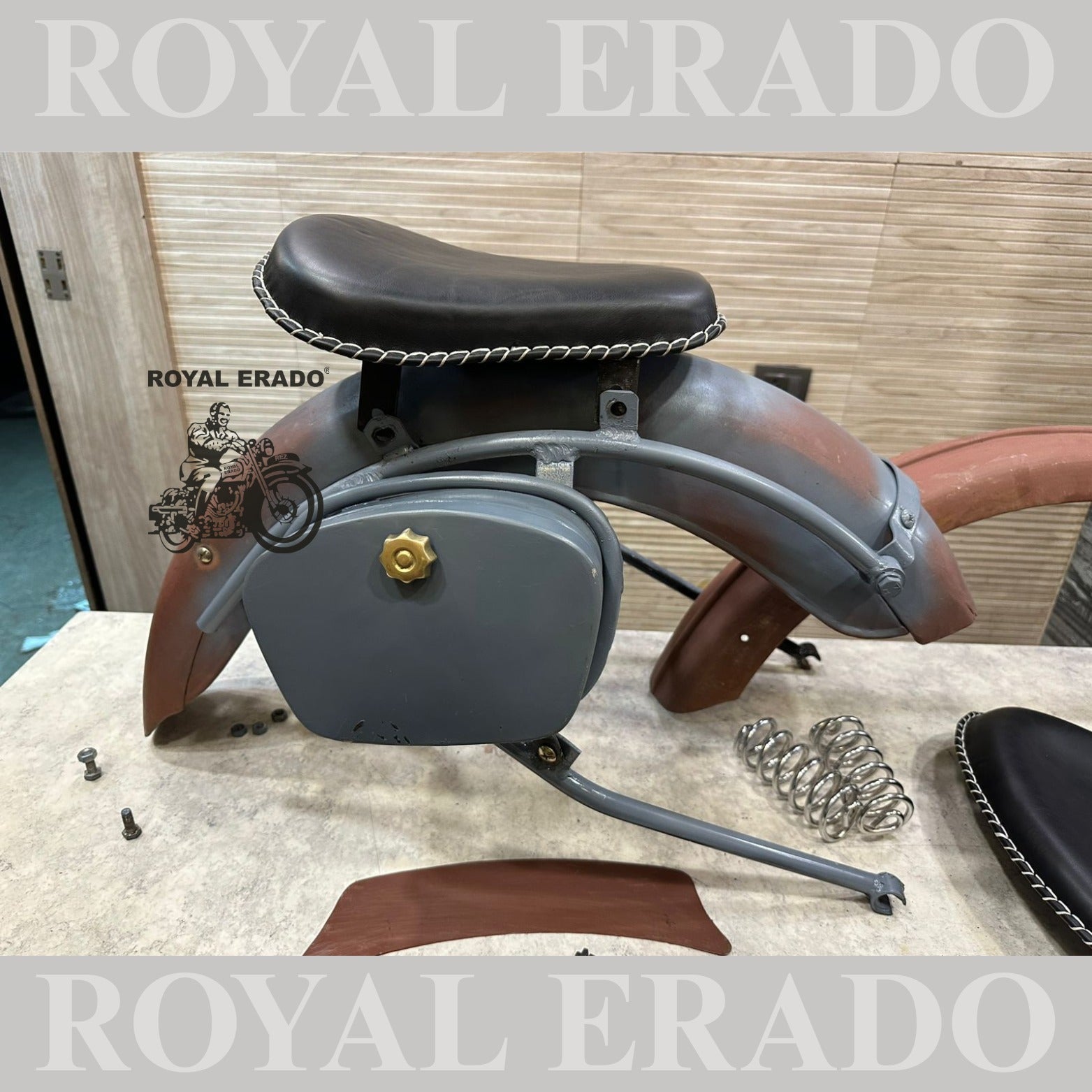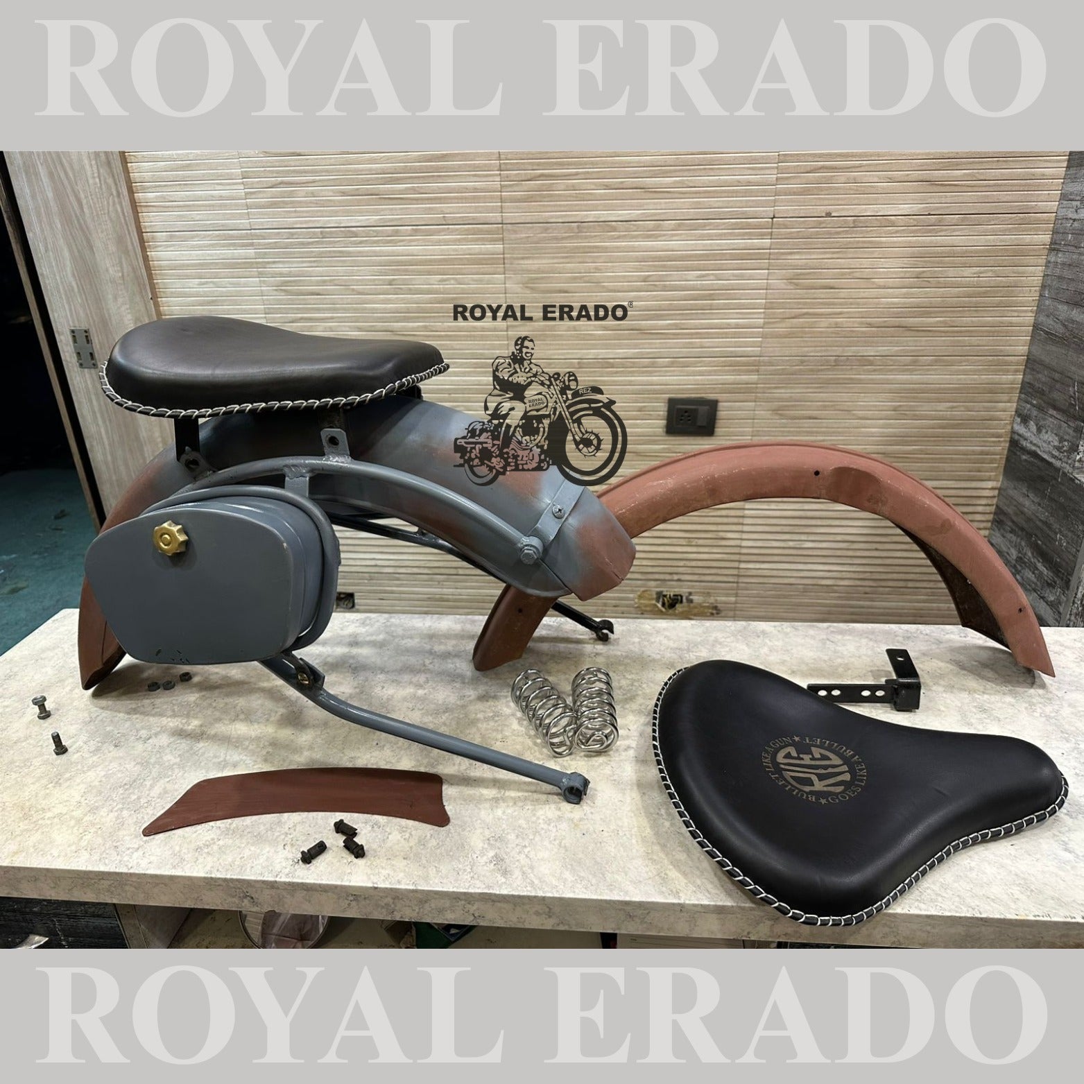 Royal Enfield complete vintage g2 1962 old model kit with g2 mudguards , leather seat and rear stay tool boxes