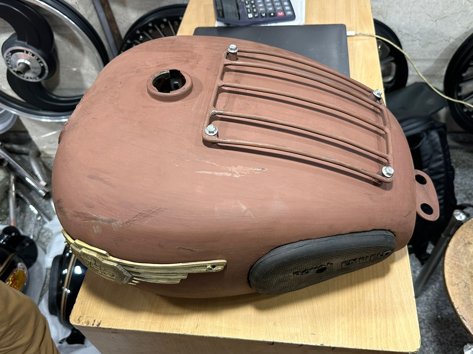 Vintage style g2 model Royal enfield tank 18 to 20 litters for classic electra standard with brass monogram knee pad and grill