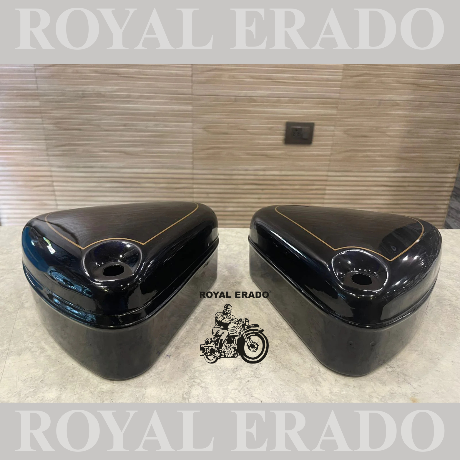 Vintage style tank and tool box for royal enfield g2 and old model standard & electra in metallic green with brass monogram